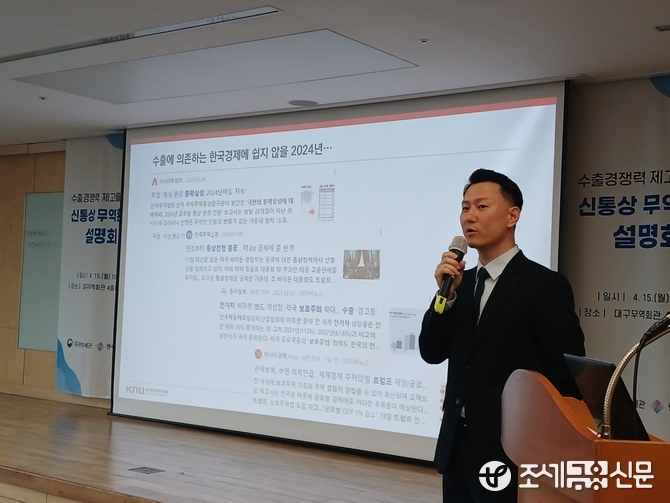 15일 대구본부세관(세관장 김정)에서 주최한 ‘수출 경쟁력 제고를 위한 신통상 무역환경 설명회’에서 곽동철 경북대학교 경제통상학부 곽동철 교수는 자동차 산업을 중심으로 최신 글로벌 통상이슈에 대해 발표자로 나서 “수출에 의존하는 한국경제가 2024년에는 쉽지 않을 것”으로 전망된다며 이같이 밝혔다.