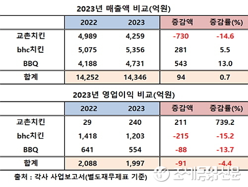 2023년 빅3 합산 매출, 전년비 0.7% 증가...교촌만 나홀로 역주행