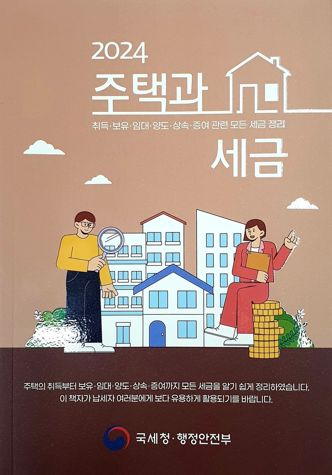 이 책은 국세청에서 종합부동산세, 소득세(임대, 양도), 상속세, 증여세에 대해 행정안전부는 취득세, 재산세에 대해 각각 ‘2024 주택과 세금’을 공동으로 수록했다.