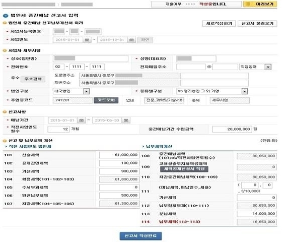 또한, 중간예납세액 신고·납부방법에 대해서는 국세청 누리집(www.nts.go.kr) ‘성실신고지원 → 법인세 →상세정보 → 법인세 중간예납’에서 자세히 안내하고 있다.
