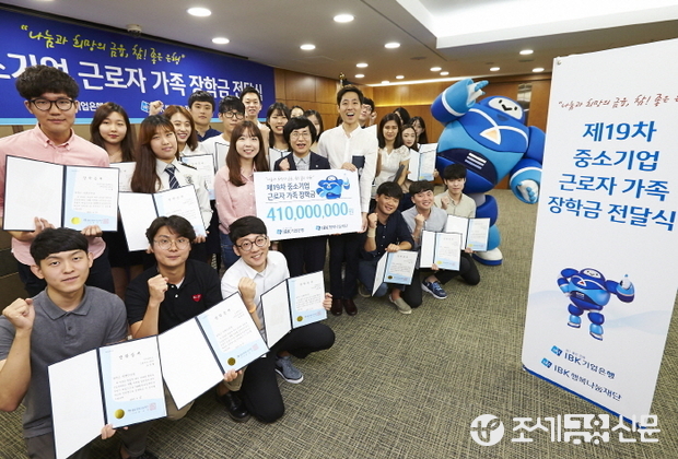(조세금융신문=김사선 기자) IBK기업은행(은행장 권선주)은 12일 IBK행복나눔재단을 통해 학업성적이 우수하거나 생활형편이 어려운 중소기업 근로자 자녀 240명에게 장학금 4억1천만원을 전달했다. 기업은행은 지난 2006년부터 지금까지 4737명에게 63억원의 장학금을, 1477명에게 57억원의 치료비 등을 후원했다.