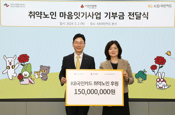 (조세금융신문=김영기 기자) KB국민카드(사장 이창권)가 서울 종로구 본사에서 취약노인 지원을 위한 후원금 1억 5천만원을 독거노인종합지원센터에 전달했다.