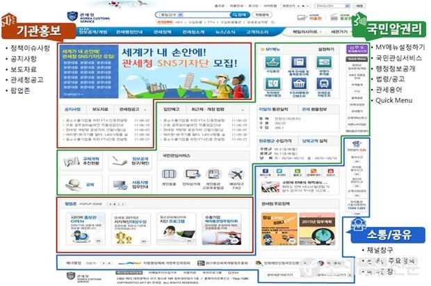 이번 개편으로 국민적 관심사항은 홈페이지 전면에 게시되고, 주요정책, 관세용어사전, 공매공고, 개인용품통관 등 자주 문의하거나 이용 빈도가 높은 정보는 초기화면에 배치된다.