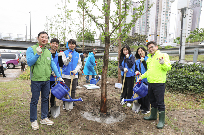 정 사장과 이 구청장을 비롯해 참석자들은 나무 심기, 지주목 설치, 나무 물주기 등 환경을 보호하고 건강한 지구를 만들기 위해 구슬땀을 흘렸다.