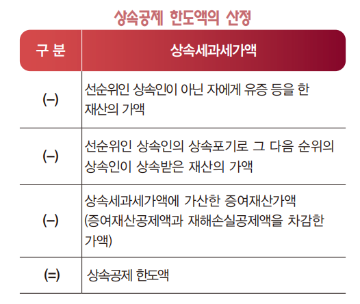 다음의 상속공제들은 한도를 계산하여 그에 따라 상속세과세가액에서 공제
