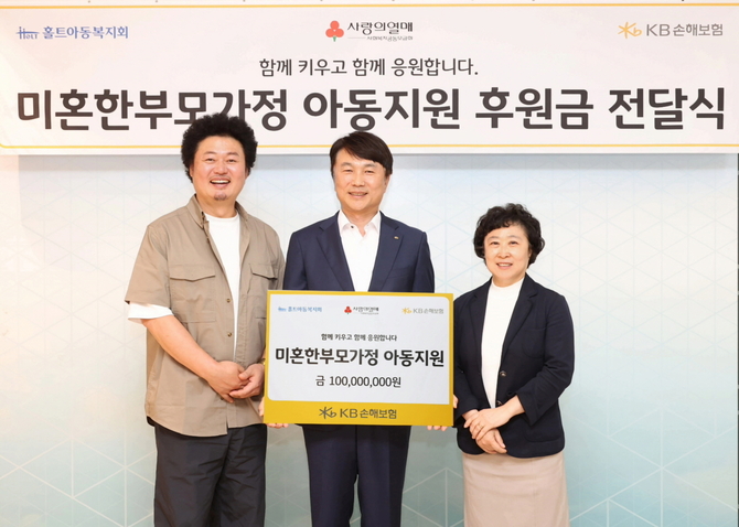KB손해보험이 홀트아동복지회에 전달한 사회공헌기금 1억원은 미혼 한 부모 가정 영유아의 건강한 양육을 돕기 위해 쓰일 예정이다.