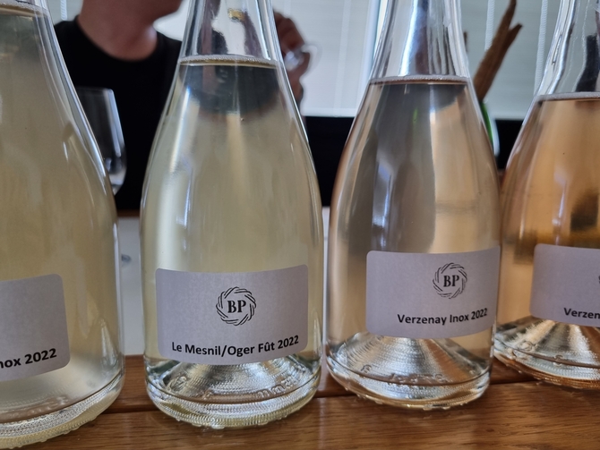 기억에 오래 남는 테이스팅은 샴페인을 만드는 베이스 와인인 뱅 끌레어(Vins Clairs) 테이스팅이었는데 서로 다른 떼루아가 가진 개성과 매력을 느낄 수 있었습니다. 이날 작년에 수확한 2022년 빈티지를 테이스팅하였는데 더웠던 해였던 만큼 바디감이 무거웠고 풍부한 미네랄이 인상 깊었습니다.