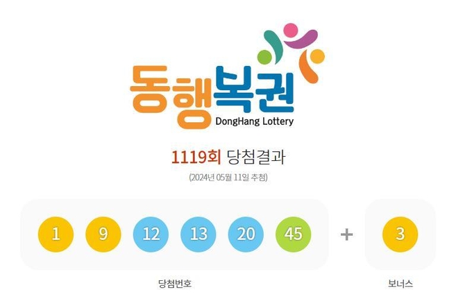 (조세금융신문=박청하 기자) 제1119회 로또복권 추첨에서 '1, 9, 12, 13, 20, 45'가 1등 당첨번호로 뽑혔다. 2등 보너스 번호는 '3'이다.