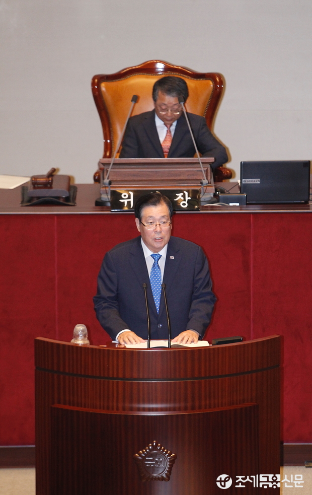 (조세금융신문=전한성 기자) 제336회국회(임시회) 제2차 예산결산특별위원회 전체회의가 18일 오전 서울 여의도 국회 예결위 회의실에서 열린 가운데 황창현 감사원장이 결산 보고를 하고 있다.