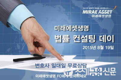 (조세금융신문=옥정수 기자) 미래에셋생명(대표이사 수석부회장 최현만)이 오는 19일, 제10회 ‘법률 컨설팅 데이’를 운영한다.