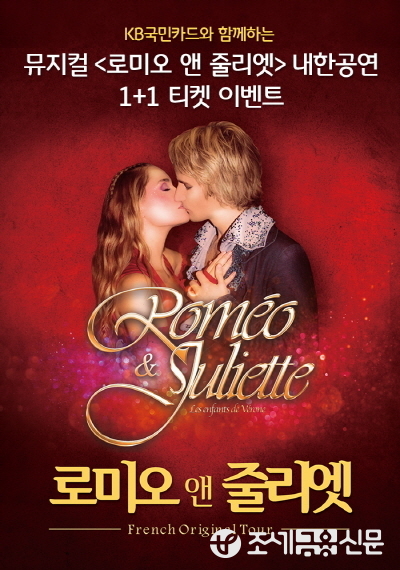 (조세금융신문=옥정수 기자) KB국민카드(사장 김덕수)가 뮤지컬 ‘로미오 앤 줄리엣’ 내한공연 예매 시 동반자 티켓 1매를 무료로 제공하는 원 플러스 원(1+1) 예매 이벤트를 진행한다고 20일 밝혔다.
