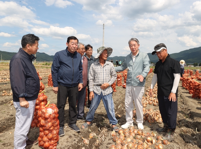 이번 방문은 중만생양파 수확기를 맞아 이상기후 관련 대응체계와 수매동향 등을 점검하고 재배농가의 애로사항을 청취하는 등 안정적인 양파 수급을 위해 진행됐다.