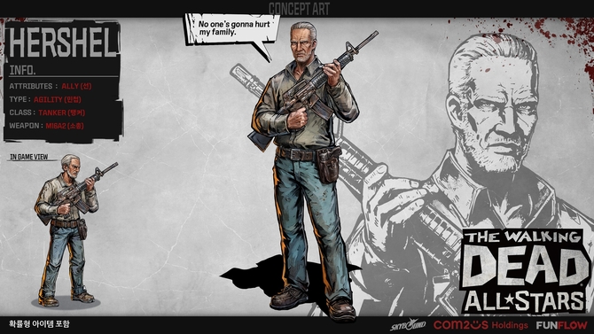 컴투스홀딩스에 따르며ㄴ이번 업데이트를 통해 게임 내에선 신규 생존자 ‘허셜’이 등장한다. 허셜은 ‘워킹데드’ 코믹스 원작의 주요 인물로 농장을 운영하며 가족을 지키기 위해 헌신하는 캐릭터다.