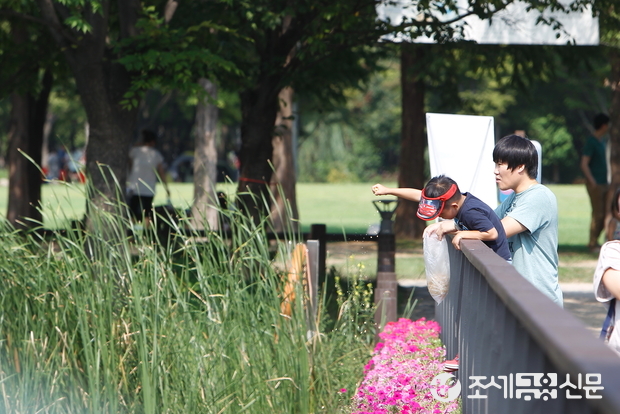 (조세금융신문=전한성 기자) 24절기 중 열 네번째 절기로, 여름이 지나면 더위도 가시고 신선한 가을을 맞이하게 된다는 '처서'를 맞은 23일 오후 서울 성동구 서울숲공원에 한 아이가 호수에 물고기 먹이를 주며 즐거운 시간을 보내고 있다.