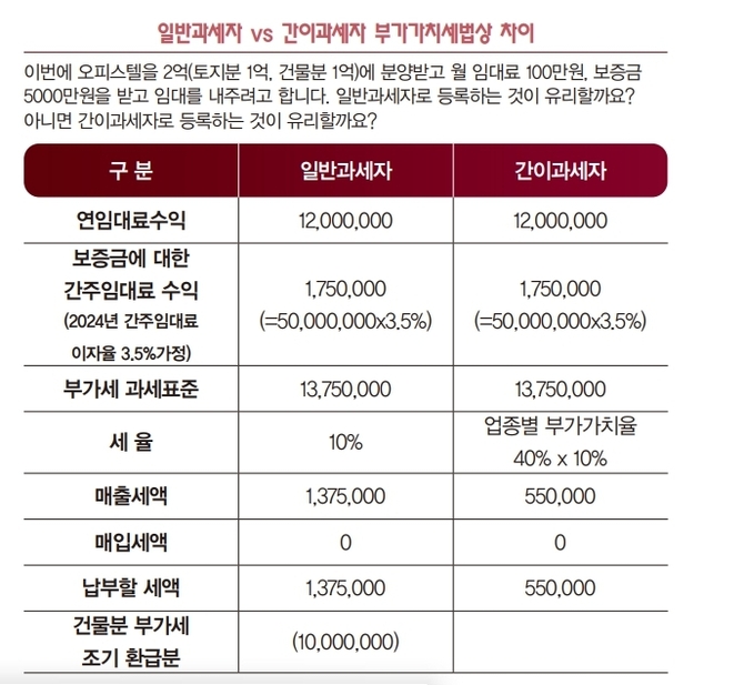 오피스텔 임대료수익으로 발생하는 부가가치세만 보면 간이과세자가 더 유리할 수 있습니다.