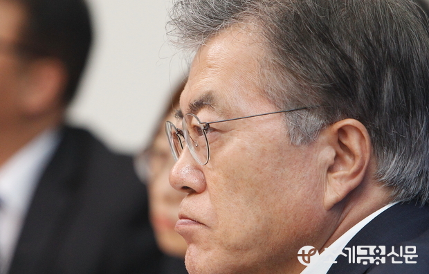 (조세금융신문=전한성 기자) 새정치민주연합 '경제정의 노동민주화 특별위원회 제1차 전체회의'가 24일 오후 서울 여의도 국회 대표회의실에서 열린 가운데 문재인 대표가 청년유니온 정준영 위원장의 발언을 듣고 있다.