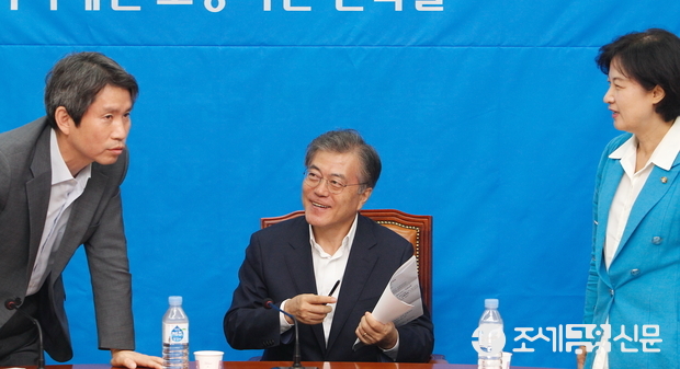 (조세금융신문=전한성 기자) 새정치민주연합 '경제정의 노동민주화 특별위원회 제1차 전체회의'가 24일 오후 서울 여의도 국회 대표회의실에서 열린 가운데 문재인(가운데) 대표와 추미애(오른쪽) 최고위원, 이인영 간사가 대화를 나누고 있다.