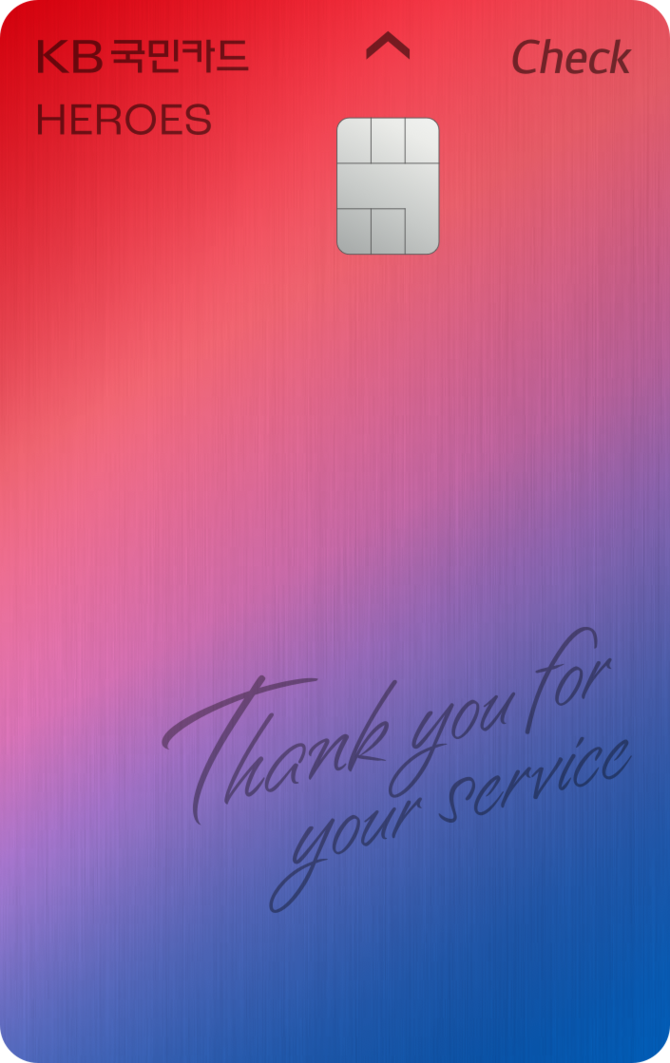 ‘KB국민 히어로즈체크카드’는 국가보훈부의 가이드에 따라 전역 후 3년 이내 또는 만 34세 이하의 제대 군인이 발급 대상이며, 행정안전부와 연계한 공공마이데이터 활용으로 병역정보를 확인해 별도 서류 제출 없이 KB Pay와 KB국민카드 홈페이지에서 발급 가능하다.