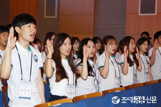 (조세금융신문=전한성 기자) 금융감독원이 25일 오후 서울 여의도 금융감독원 대강당에서 '대학생 금융교육봉사단 발대식'을 개최한 가운데 봉사단원들이 선서를 하고 있다.