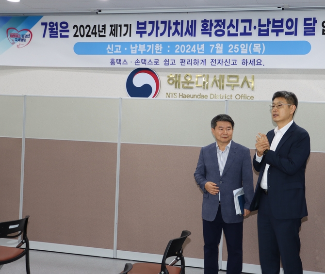 (조세금융신문=고승주 기자) 김동일 부산지방국세청장이 지난 17일 해운대세무서 부가가치세 신고 현장을 방문해 납세자 신고 불편이 없는지 살폈다고 18일 부산국세청이 밝혔다.