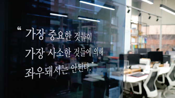 청년들의 영등포 본점 창가에는 ‘남들과 같다면 진 것이다’라는 문구가 큼지막하게 적혀있다. 최정만 대표는 높이 5m의 곡선으로 이뤄진 창에 청년들의 정체성을 대변하는 의미로 이러한 문구를 적어 놓았다. 세무법인청년들은 그래서 남들과 같지 않기 위해 지금도 끊임없는 변화를 모색한다.