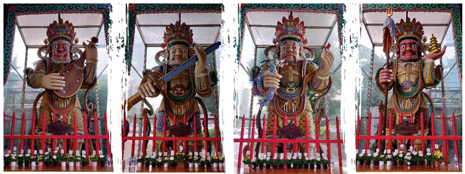 그러다가 불교에 귀의하여 부처와 불법을 지키는 수호신이 되었다. 사천왕상은 갑옷 입은 무장의 모습으로 사후적인 의미보다 불교 시설의 장엄을 위하여 제작되었다.