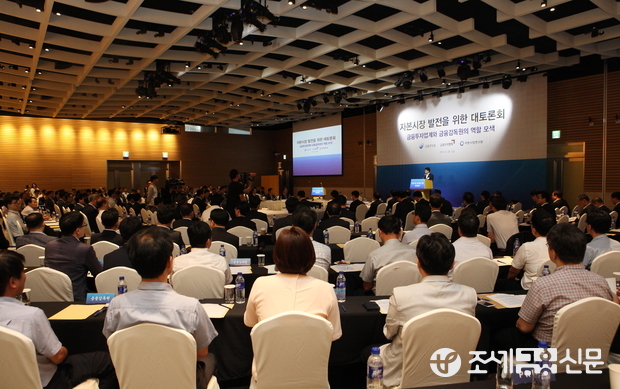 (조세금융신문=전한성 기자) '자본시장 발전을 위한 대토론회 - 금융투자업계와 금융감독원의 역할 모색'이 28일 오후 서울 영등포구 여의도동 전경련회관에서 열린 가운데 진웅섭 금융감독원장이 개회사를 하고 있다.