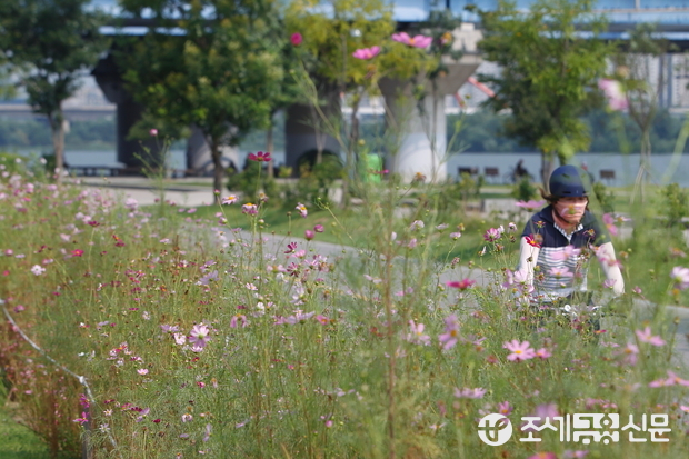 (조세금융신문=전한성 기자) 8월의 마지막날인 31일 오전 코스모스가 핀 한강시민공원에 한 시민이 가을바람을 맞으며 자전거를 타고 있다.