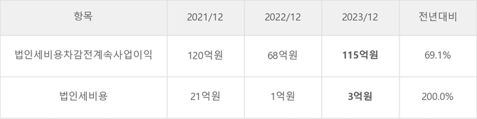 티에프이의 지난 3년 동안 법인세 납부액 추이를 보면 2022년에는 감소했으나, 작년에는 3억원으로 증가했다.