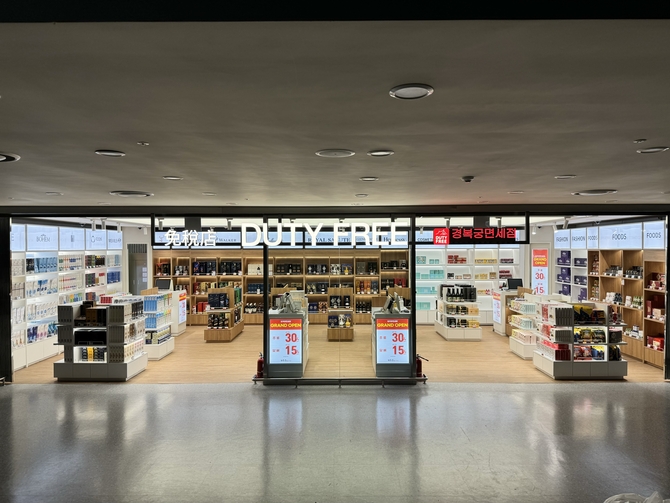 새롭게 오픈한 경복궁면세점은 주류,담배,식품등 전품목을 운영하며 입국 여행객들에게 한층 더 향상된 쇼핑편의를 제공한다.