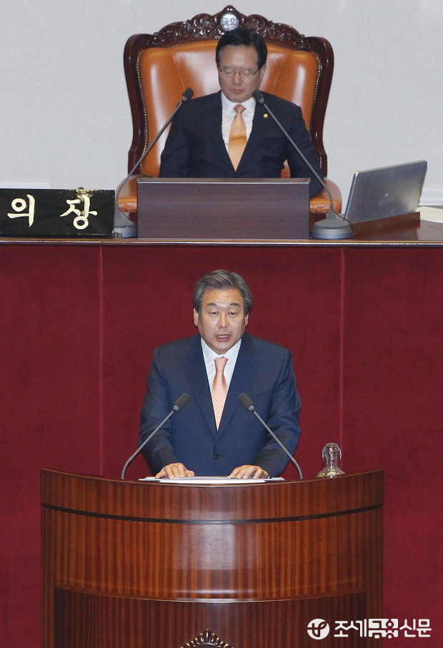 (조세금융신문=전한성 기자) 새누리당 김무성 대표의 국정에 관한 교섭단체대표연설이 있을 제337회 국회(정기회) 제2차 본회의가 2일 오전 개의된 가운데 김 대표가 연설을 하고 있다.