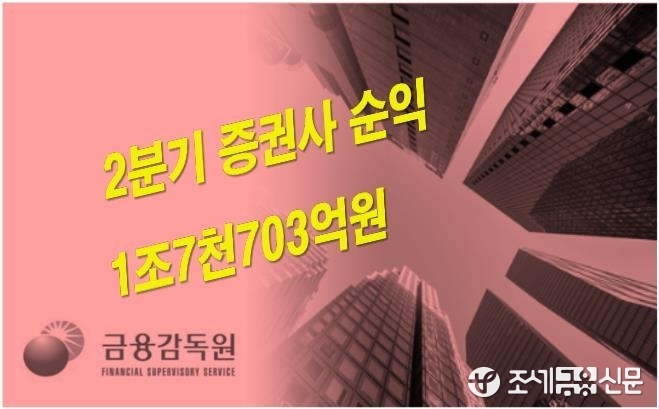 금융감독원이 6일 발표한 '2분기 증권·선물회사 영업실적'에 따르면 2분기 증권사 60개사의 순이익이 1조7천703억원으로 전분기 대비 29.3% 감소했다. 작년 동기 대비해서는 69.1% 늘어난 수치다.