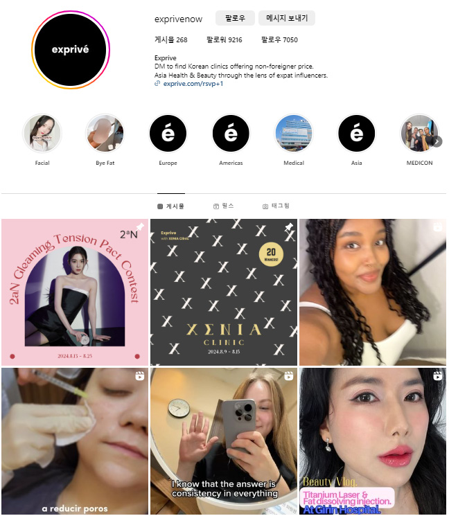 예를 들면, 엑스프리베는 전세계 100여 개국 출신 인플루언서들을 섭외하고 그들의 모국어로 한국 화장품에 대한 체험 영상을 제작하고, 이를 개인 SNS채널과 엑스프리베 공식 인스타그램 및 틱톡 채널에 동시 게시한다.