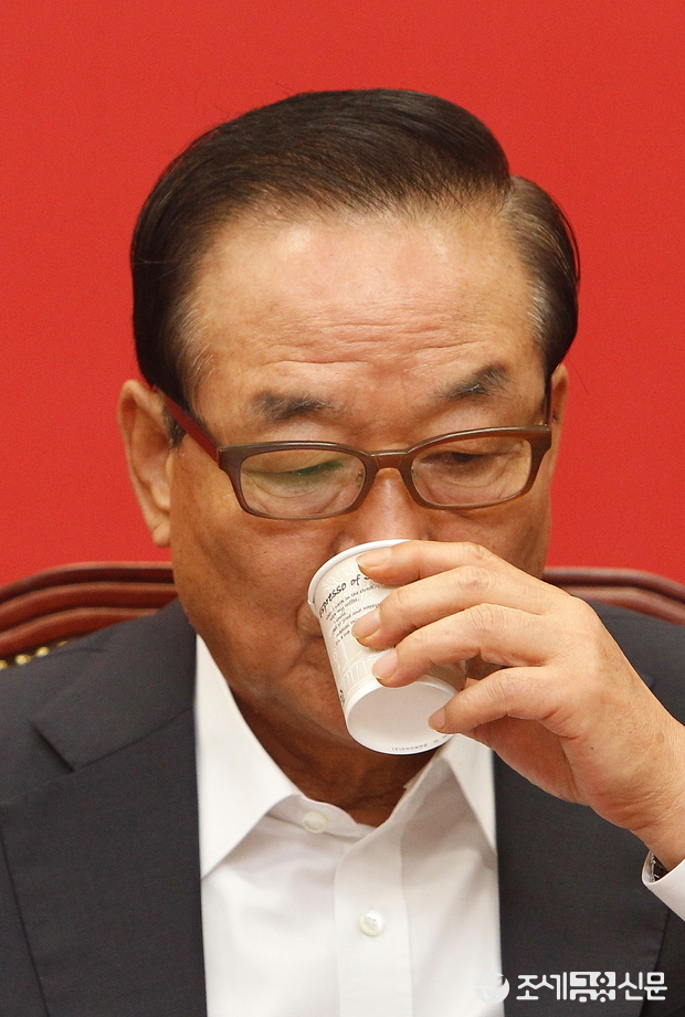 (조세금융신문=전한성 기자) 새누리당 최고위원회의가 3일 오전 서울 여의도 국회 대표회의실에서 열린 가운데 서청원 최고위원이 목을 축이고 있다.