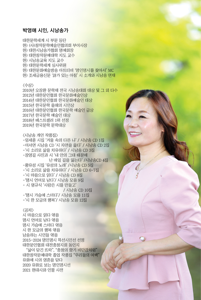 본지 '아침을 여는 詩'로 매주 월요일 시낭송을 소개하는 박영애 시인이 엮은 시낭송 모음집 제13집 "기억으로 남는 시"가 최근 출간됐다. 이번 시집은 30편의 명시를 담아 연속으로 감상할 수 있는 영상과 함께 제공된다.