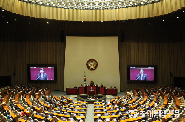 (조세금융신문=전한성 기자) 새정치민주연합 이종걸 원내대표의 국정에 관한 교섭단체대표연설이 있을 제337회 국회(정기회) 제3차 본회의가 3일 오전 개의된 가운데 이 원내대표가 연설을 하고 있다.