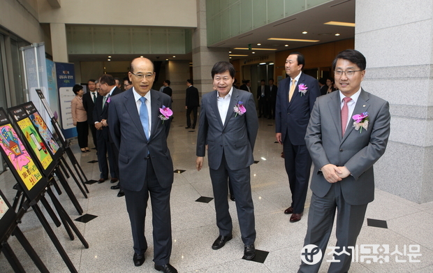 (조세금융신문=전한성 기자) '제10회 금융교육 공모전 시상식'이 3일 오후 서울 여의도 금융감독원 대강당에서 열린 가운데 진웅섭(오른쪽) 금융감독원장이 내빈들과 공모전 수상작품을 둘러보고 있다.