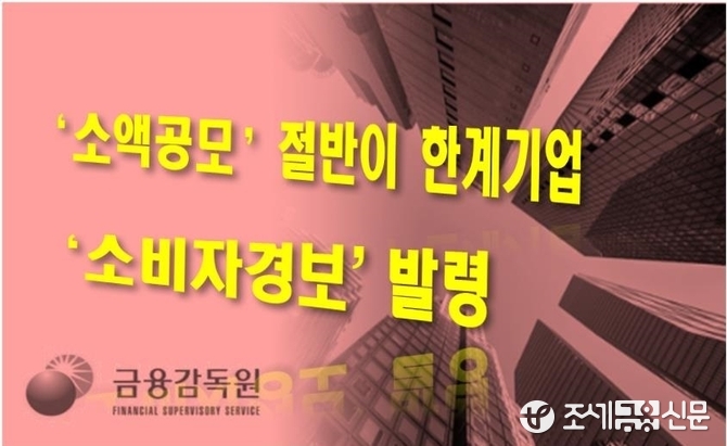 (조세금융신문=김종태 기자) 금융감독원은 소액공모 기업 2곳 중 1곳이 재무실적이 저조한 한계기업으로 드러나자 '소비자경보'를 발령했다.