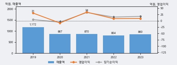 코리아나는 2023년 매출액 860억원과 영업이익 9억원을 기록했다. 전년대비 매출은 7.0%, 영업이익은 6.8% 각각 상승했다. 이 회사의 매출액 증감률과 영업이익 증감률은 각각 코스닥 상위 38%, 상위 41%에 해당된다.