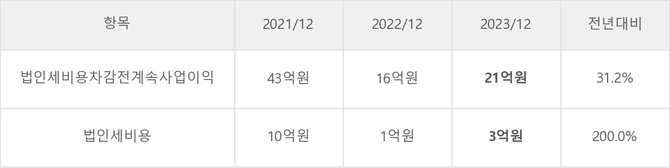 코리아나의 지난 3년 동안 법인세 납부액 추이를 보면 2022년에는 감소했으나, 작년에는 3억원으로 증가했다.