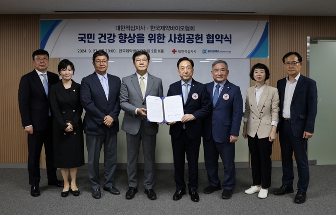 (조세금융신문=최주현 기자) 한국제약바이오협회는 27일 서울 서초구 협회 회관에서 대한적십자사와 '국민 건강 향상을 위한 사회공헌 협약식'을 열었다.