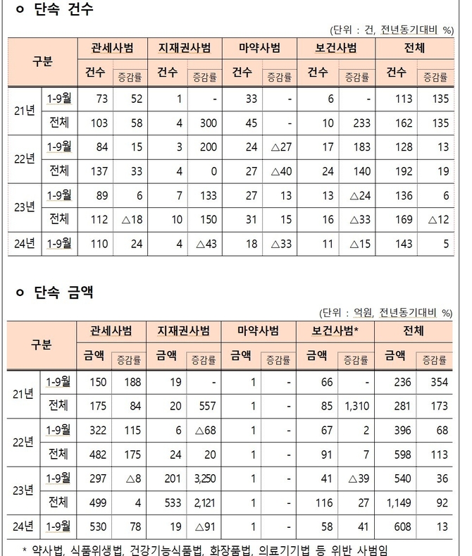 한민 관세청 조사국장은 “해외직구가 일상화된 만큼 이를 악용한 불법행위도 끊이지 않고 있다”며 “선량한 소비자의 피해를 예방하고 국민의 건강과 안전을 위해 해외직구 악용사범에 대한 정보분석 및 기획단속을 더욱 강화해 나가겠다”고 밝혔다.