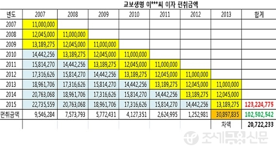 이 씨는 정상적으로는 1억2천322만4천775원을 받아야 했으나 실제로는 1억250만2천542원을 받았다. 결국 2천72만2천233원을 받지 못한 셈이다.