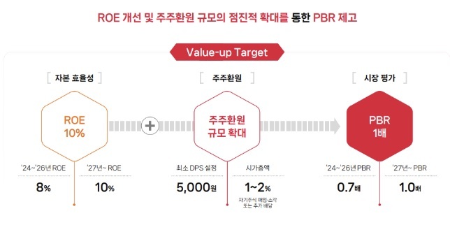 SK는 이같은 주주환원 정책 강화 및 자본 효율성 제고를 오는 2027년 이후 주가순자산비율(PBR) 1배 수준의 기업가치를 달성하겠다는 목표를 제시했다.