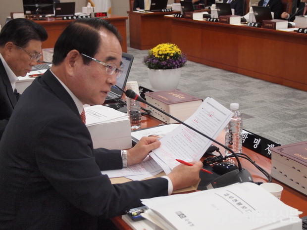 (조세금융신문=김태효 기자) 10일 오전 세종시 나성동 국세청사에서 열린 기획재정위원회 국세청에 대한 국정감사에서 박명재 새누리당 의원이 질의하고 있다.