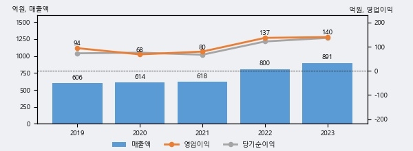 신일제약은 2023년 매출액 891억원과 영업이익 140억원을 기록했다. 전년대비 매출은 11.4%, 영업이익은 2.4% 각각 상승했다. 이 회사의 매출액 증감률과 영업이익 증감률은 각각 코스닥 상위 30%, 상위 39%에 해당된다.