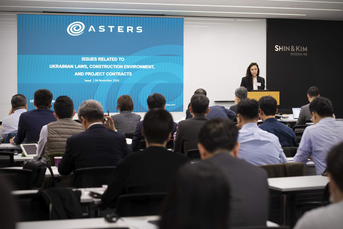 첫번째 주제 발표는 ASTERS의 빅토리야 데미덴코(Viktoriya Demydenko) 변호사와 세종의 이승수 변호사(연수원 31기)가 맡아 각각 ‘우크라이나 법률 및 건설환경, 프로젝트 계약 관련 이슈’ 및 ‘우크라이나 건설 관련 법률 체계 및 유의사항’에 대해 설명했다.