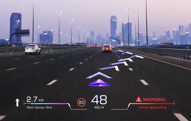 예컨대 고속도로를 주행 중인 차량이 출구로 나가야 할 때 주행 상황을 고려해 차선 변경과 주행 경로를 차량의 디스플레이에 AR 이미지로 안내선으로 표시해 준다. 이때 헤드업디스플레이(HUD) 외에 내장용 디스플레이에도 전방 카메라로 촬영한 실제 도로 영상에 AR 이미지를 자연스럽게 분리·변형해 직관적인 주행 안내를 제공한다.