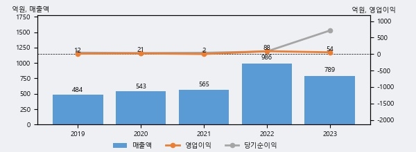 한라IMS은 2023년 매출액 789억원과 영업이익 54억원을 기록했다. 전년대비 매출은 -20.0%, 영업이익은 -39.1% 각각 하락했다. 이 회사의 매출액 증감률과 영업이익 증감률은 각각 코스닥 하위 21%, 하위 39%에 해당된다.
