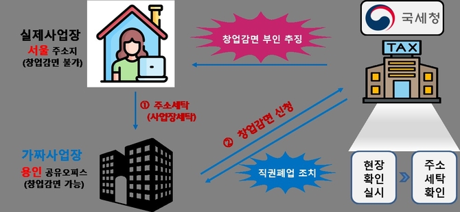 국세청은 ‘공유오피스 세원관리 T/F’를 구성하여 용인·송도 등 지방 공유오피스에 입주한 무늬만 사업자들을 정밀 검증 중이며, 가짜 사업장은 직권폐업 조치하고 부당감면 사업자는 감면세액을 전액 추징하고 있다.